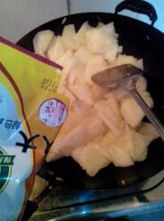(6)放入土瓜片,快速翻炒均匀。